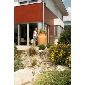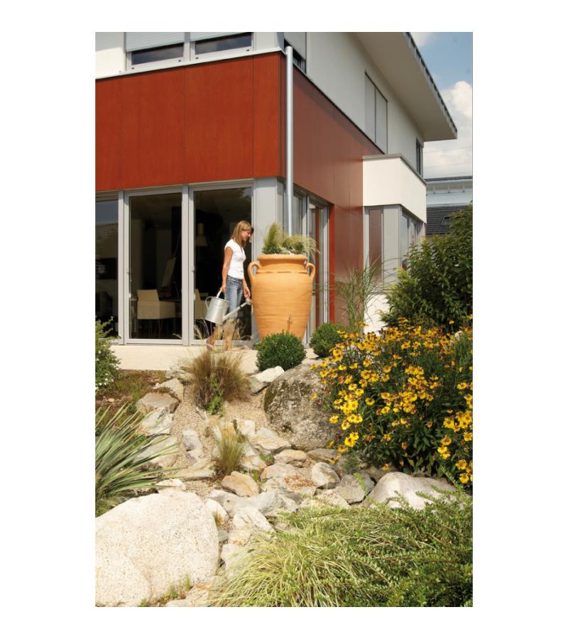 Met de Amphore regenton geniet u van een praktische wateropslagoplossing die ook esthetisch aantrekkelijk is, perfect voor elke tuin.